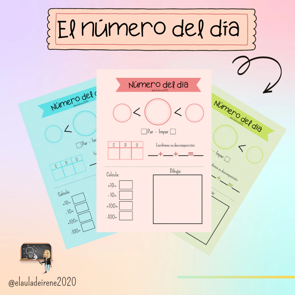 iHola! Os traigo esta ficha sobre el número del día. Cada día propondremos a nuestro alumnado un número diferente y lo analizaremos: número anterior, número posterior, descomposición, representación gráfica... Lo ideal es imprimirlo en tamaño A3 y ponerlo en un lugar visible para el grupo. Espero que os guste. ¡GRACIAS!